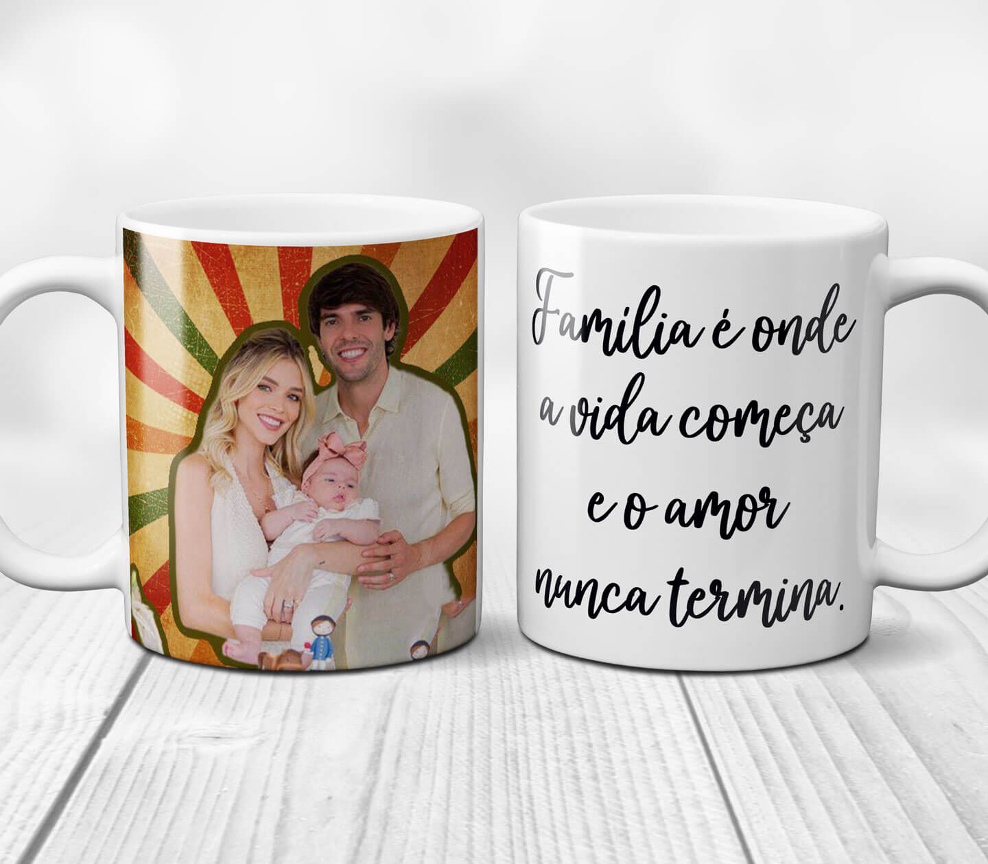 Canecas de porcelana branca com 350ml e 10cm de altura. Consulte valores para outras cores de interior e alça da caneca.