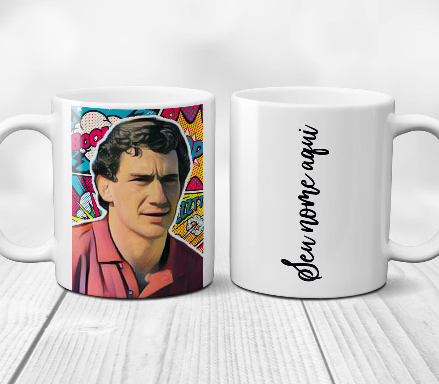 Canecas de porcelana branca com 350ml e 10cm de altura. Consulte valores para outras cores de interior e alça da caneca.