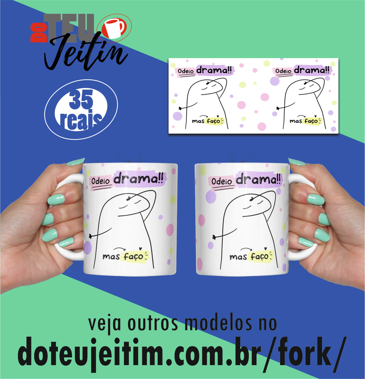 Canecas Fork, Odeio drama, mas faço. Se quiser personalizar com nome me chama no Whatsapp.