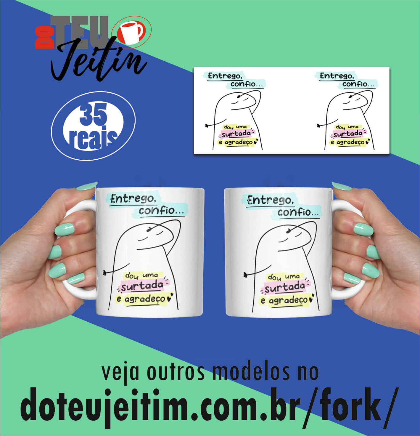Canecas Fork, Entrego, confio, dou uma surtada e agradeço. Se quiser personalizar com nome me chama no Whatsapp.