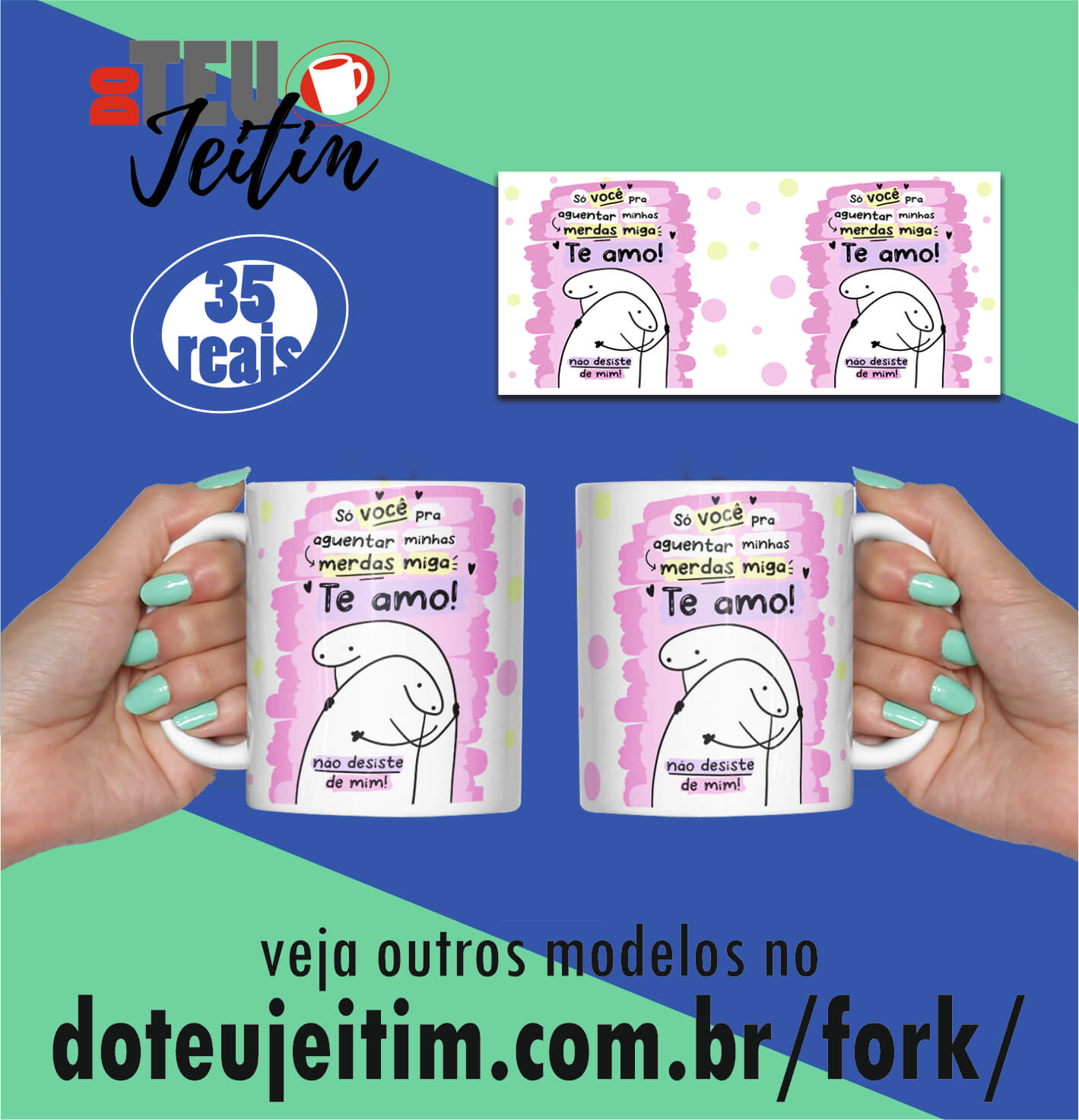 Canecas Fork, Só vc pra aguentar minhas merdas miga, te amo. Se quiser personalizar com nome me chama no Whatsapp.