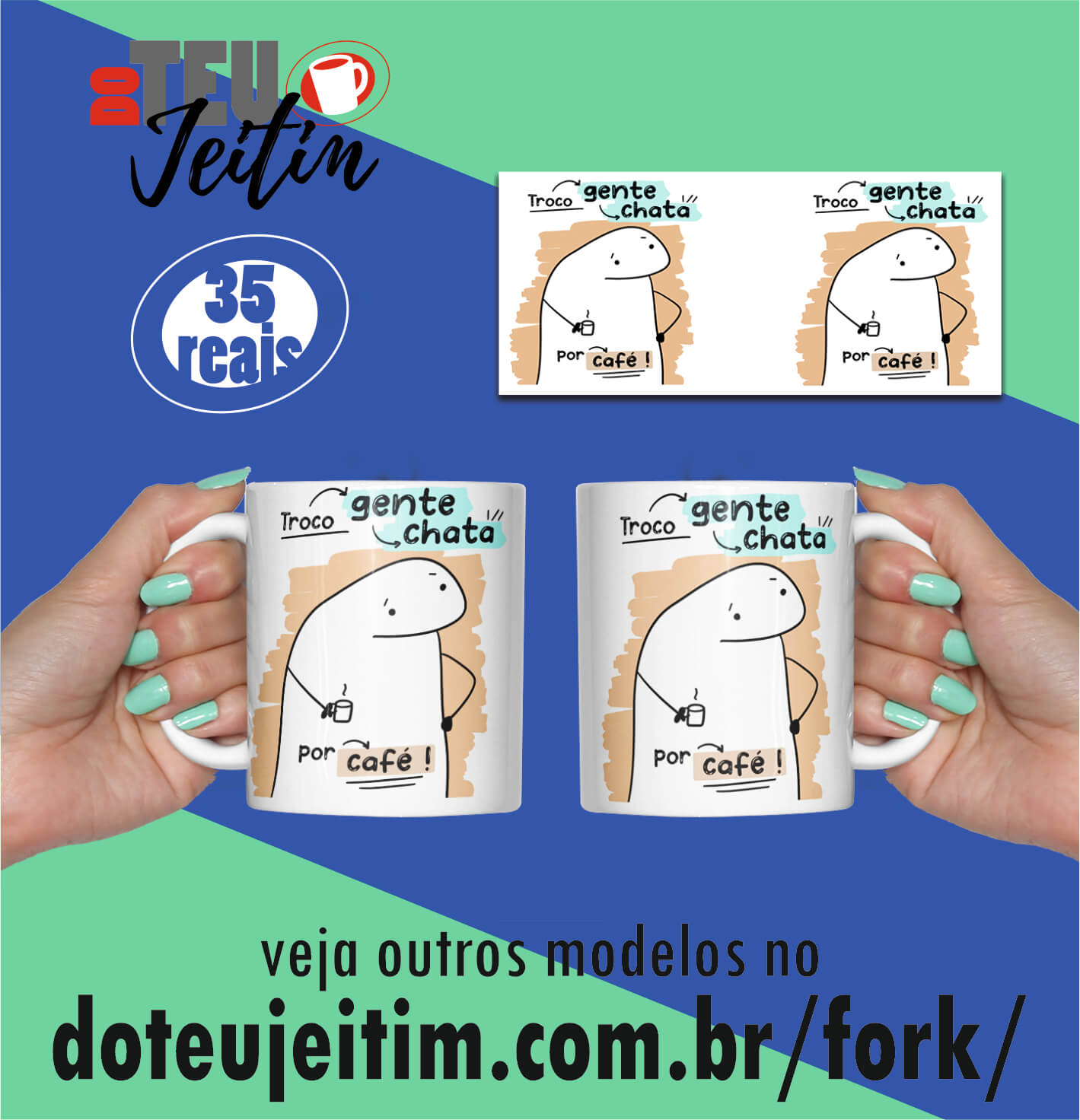 Caneca Flork 40 – Troco gente chata por café