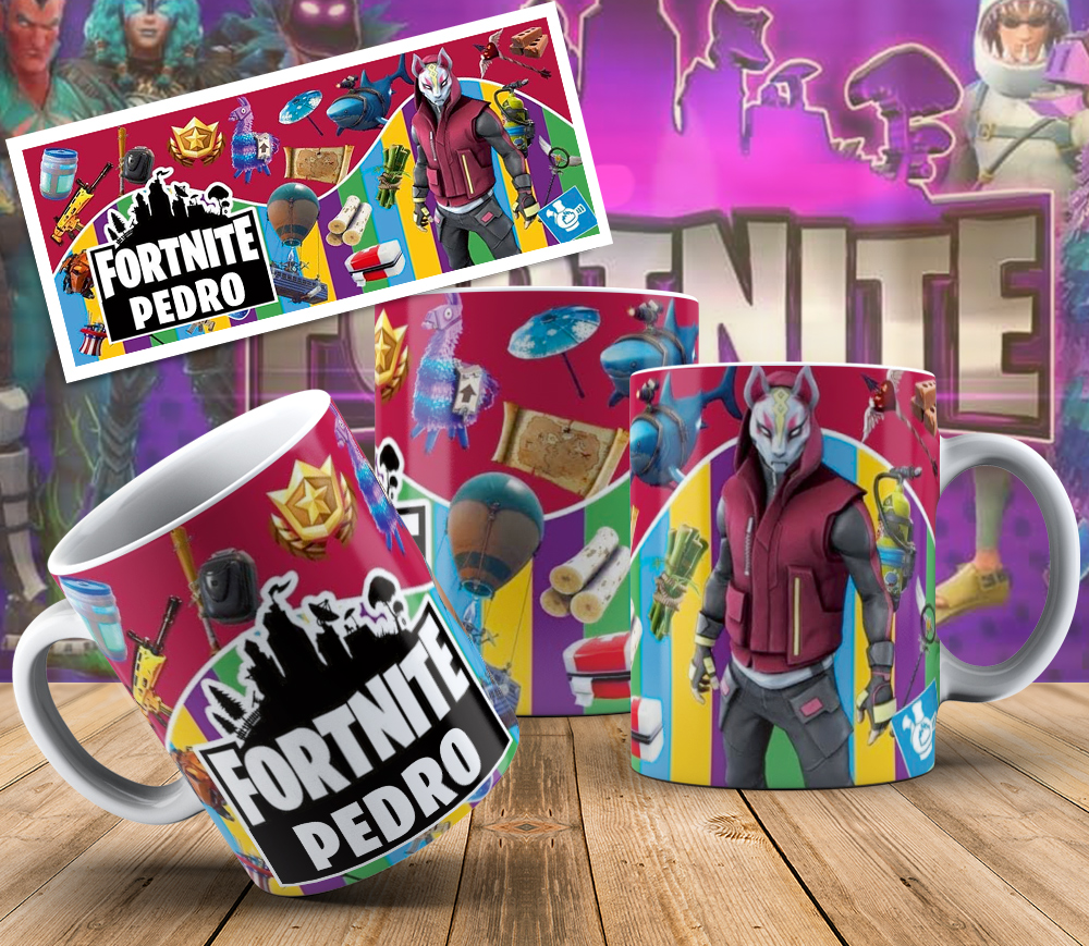 Caneca do jogo Fortnite, é possível a personalização com o nome da criança como na foto, para isso me contatar no Whatsapp.
