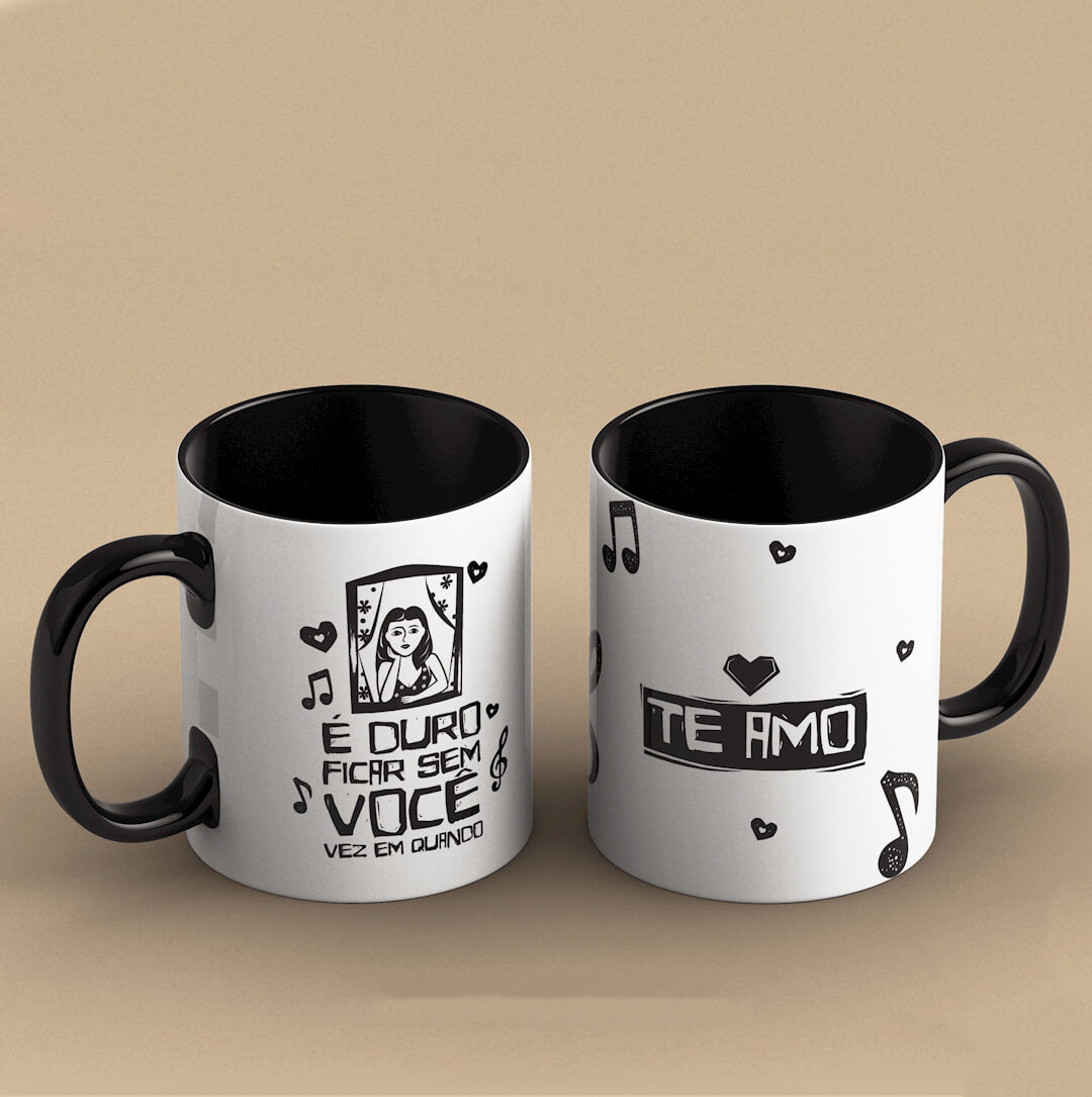 Canecas de porcelana com 350ml e 10cm de altura.
