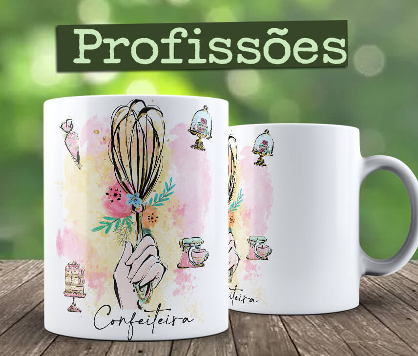 Canecas das Profissões, Confeiteira, um ótimo presente para seus amigos, É possível colocar nome de pessoa para personalizar, para isso me contatar no Whatsapp.