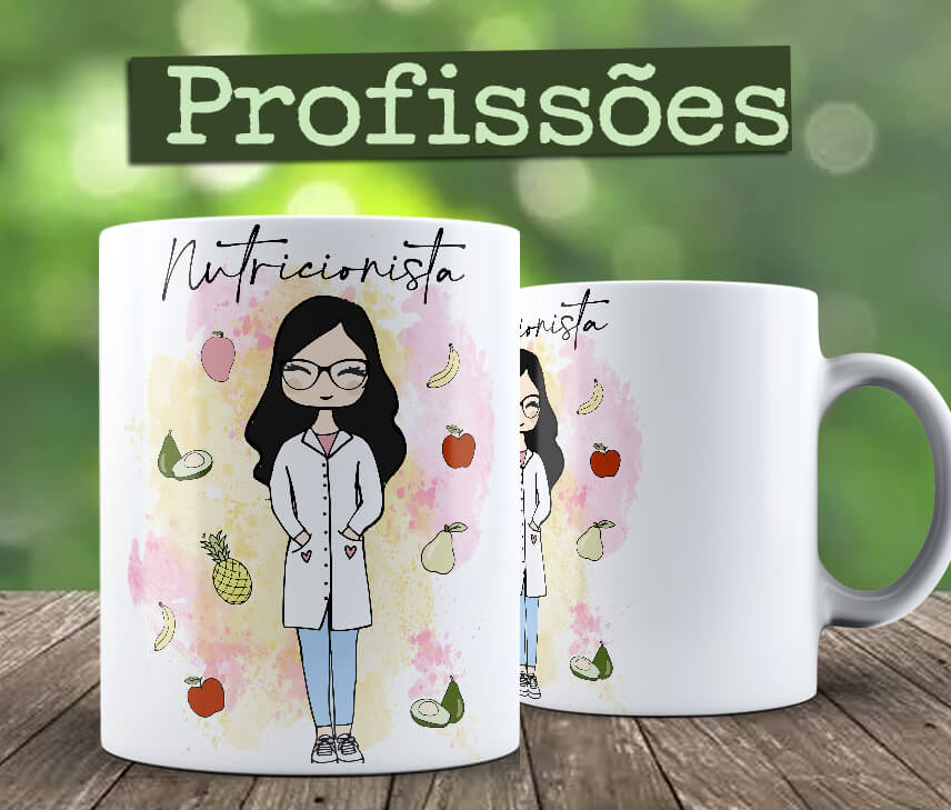 Canecas das Profissões, Nutricionista, um ótimo presente para seus amigos, É possível colocar nome de pessoa para personalizar, para isso me contatar no Whatsapp.