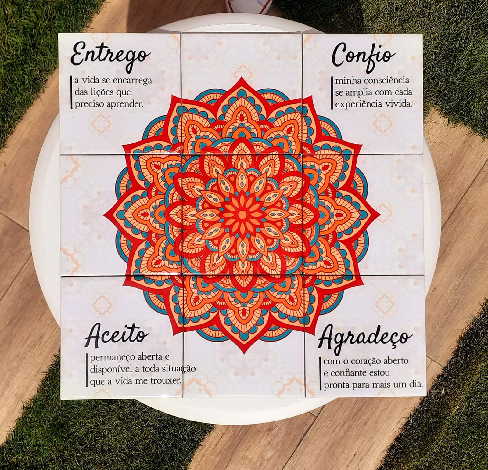 Mosaico de Azulejos – Mandala Vermelha – 9 Peças.